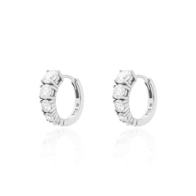 Brinco Argola Cravejada 12mm Moissanite - Prata