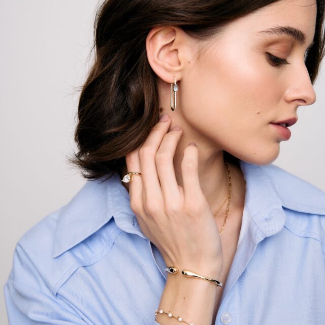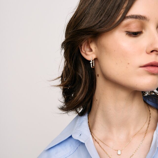 Brinco Argola Cravejada Com Ponto de Luz Moissanite – Dourado