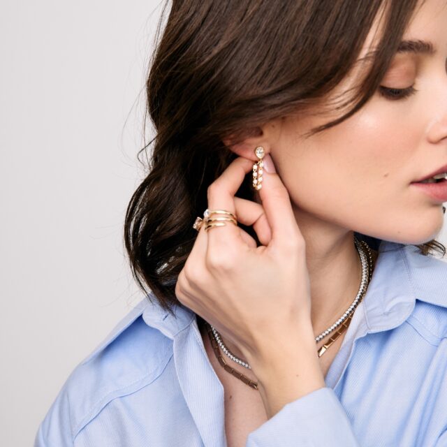 Brinco Solitário Moissanite Cravação Inglesa Com Corrente – Dourado