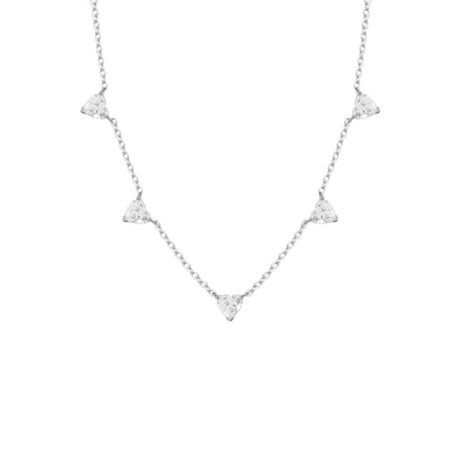 Colar Solitário 5 Corações Moissanite – Prata