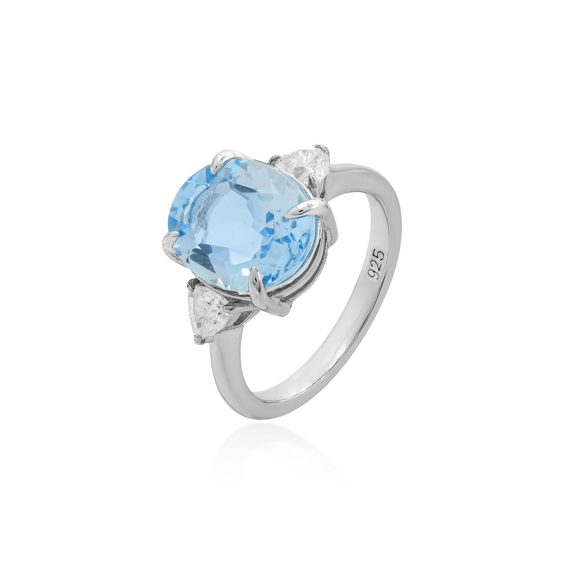 Anel Oval Topázio Sky c/ Trillion Moissanite – Prata