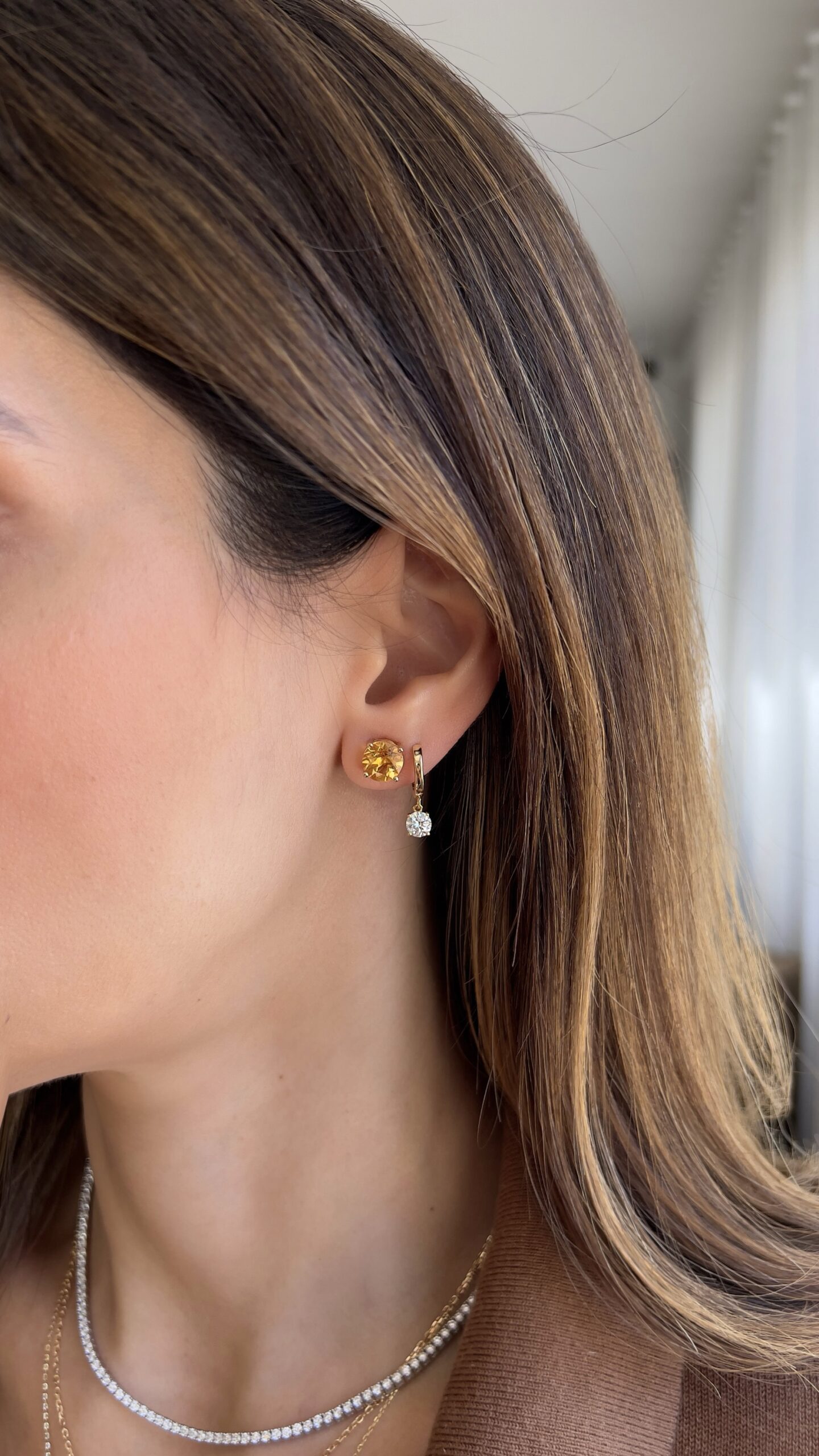 Argola Lisa Com Pingente Solitário Moissanite – Dourado