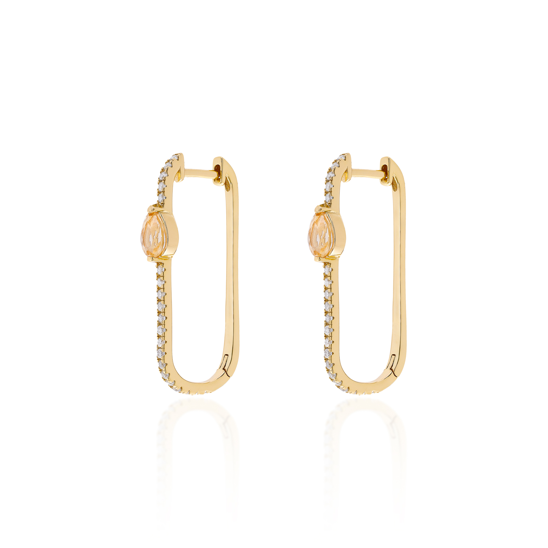 Brinco Argola Meia Cravação Citrino Gota – Dourado