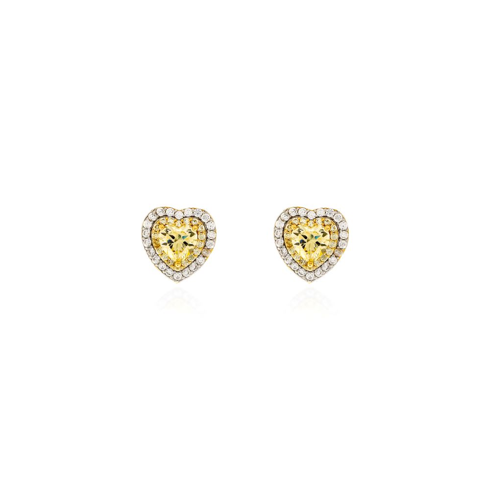 Brinco Coração Fancy Yellow Cravejado – Dourado