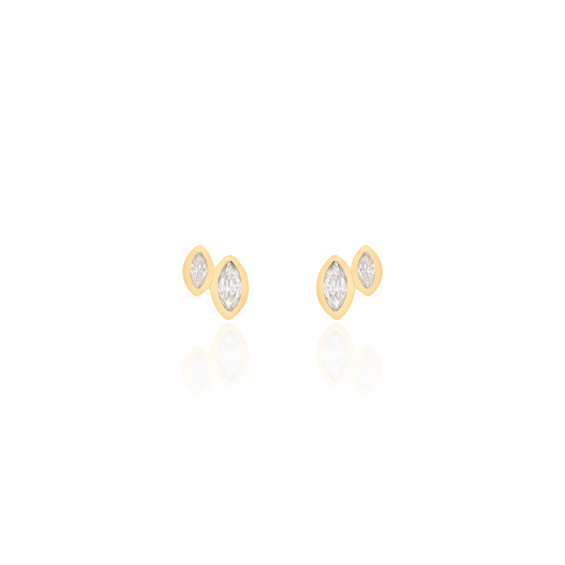 Brinco Duas Navetes Moissanite Cravação Inglesa – Dourado