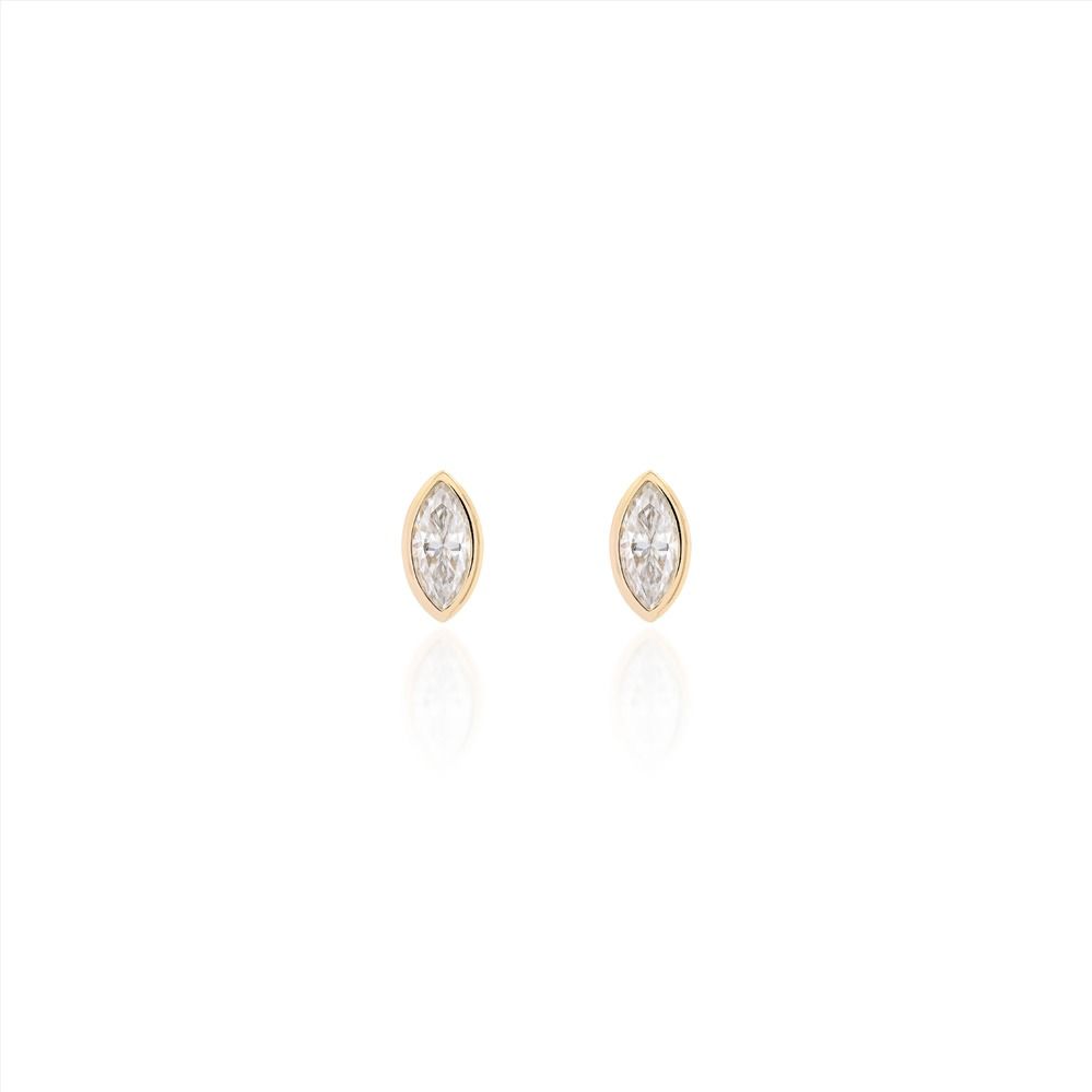 Brinco Solitário Cravação Inglesa Navete Moisssanite – Dourado