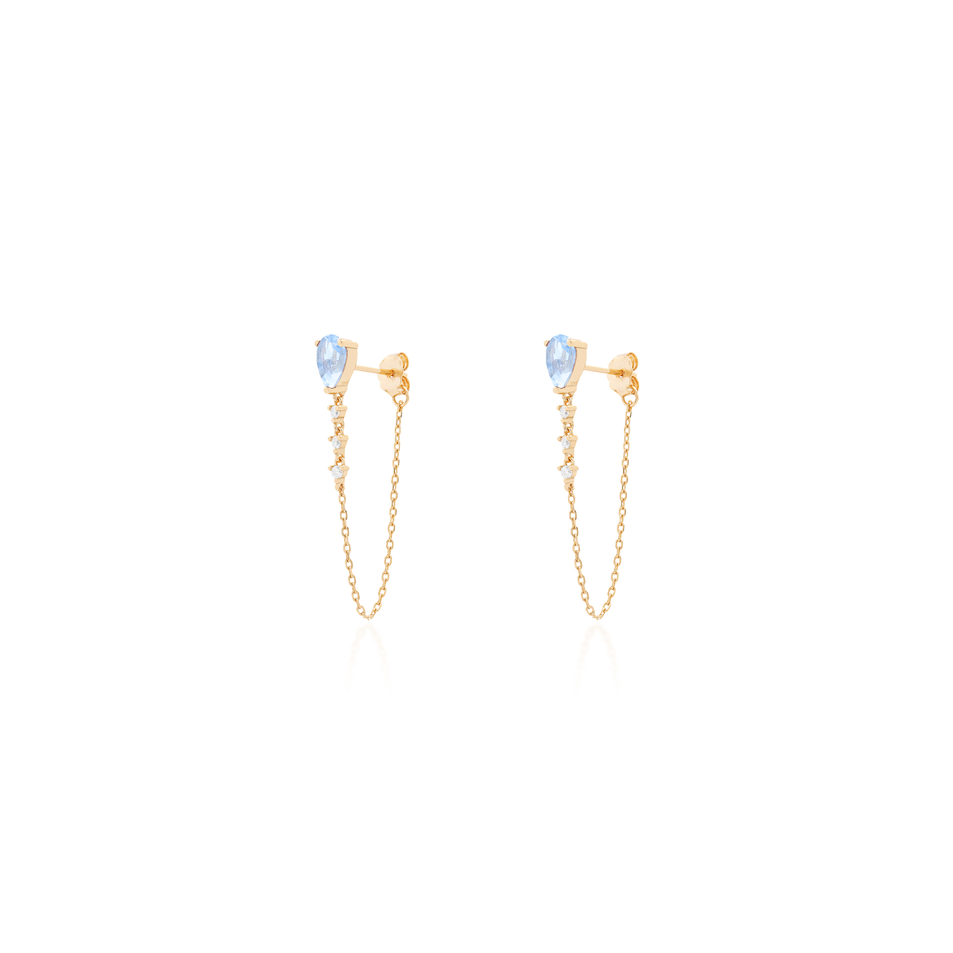 Brinco Solitário Gota Topázio Sky Com Corrente – Dourado