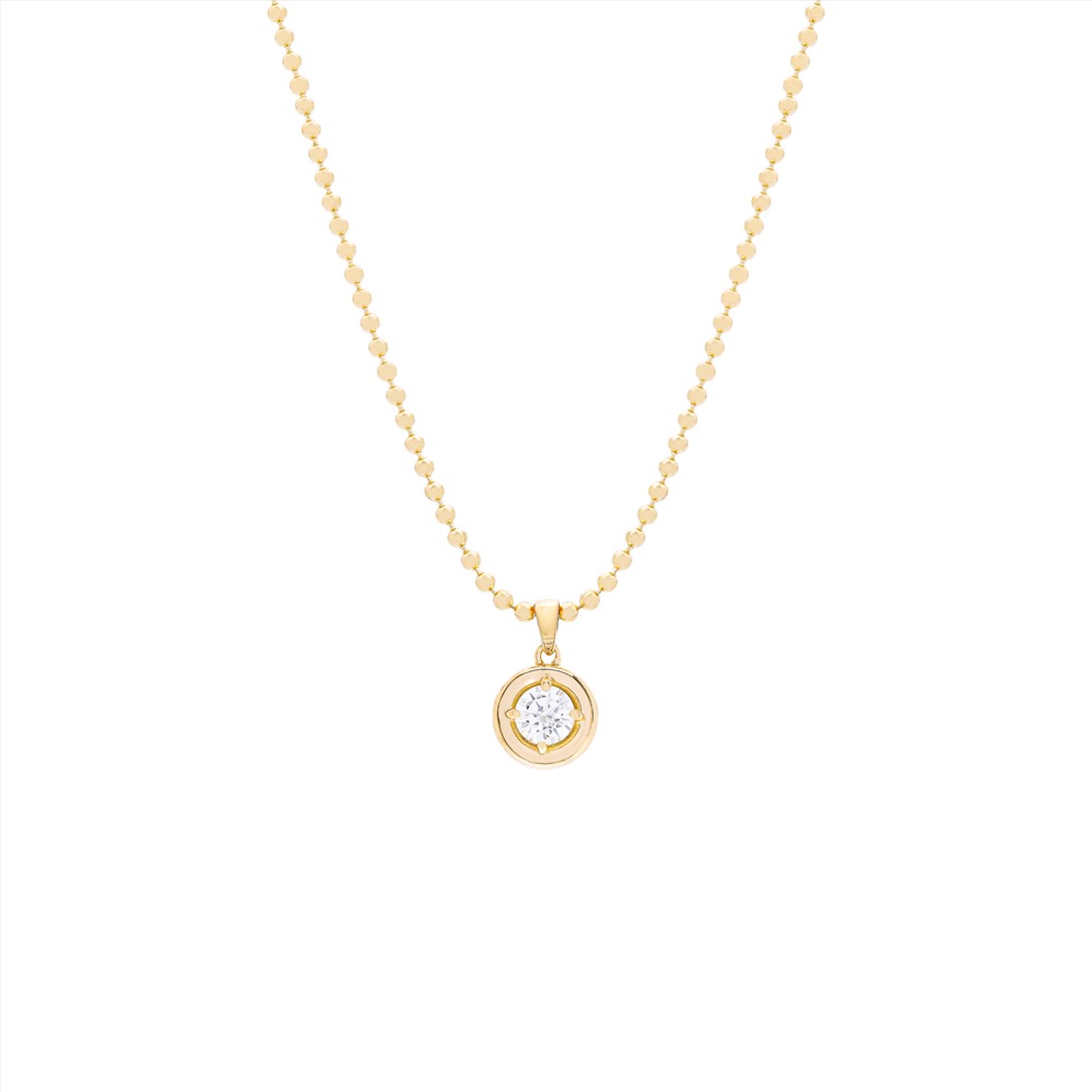 Colar Bolinhas Com Solitário Moissanite – Dourado