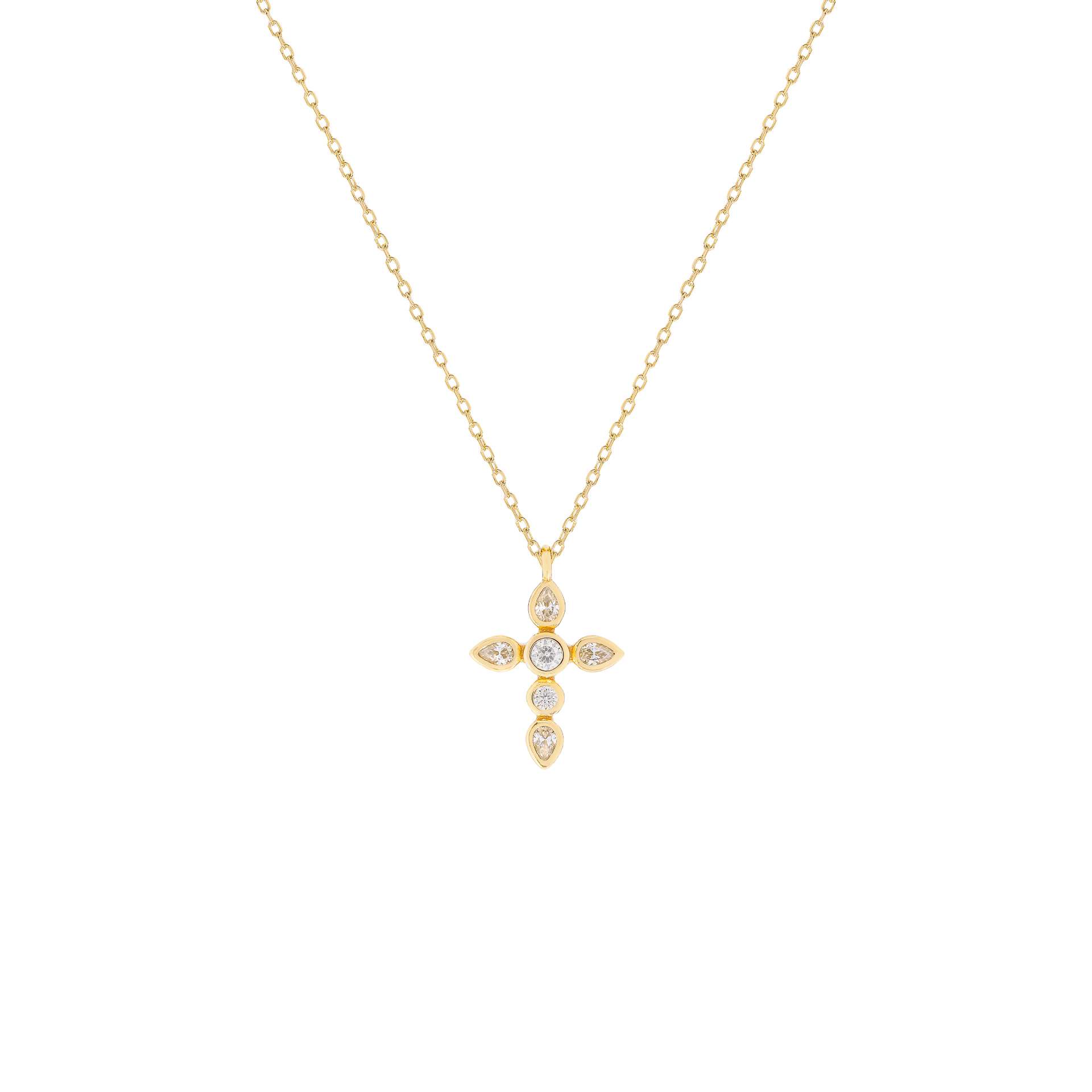 Colar Cruz Moissanite Cravação Inglesa – Dourado