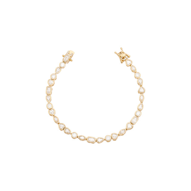 Pulseira Riviera Corações Lisos e 1 Cravejado - Dourado